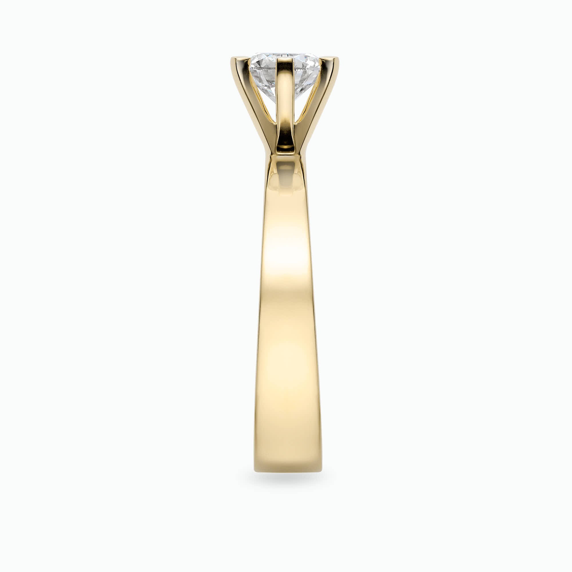 טבעת קלאסית עשויה זהב 14K, משובצת ביהלום מרכזי עם 6 שיניים החל ממשקל 0.50 קראט, בחיתוך עגול.