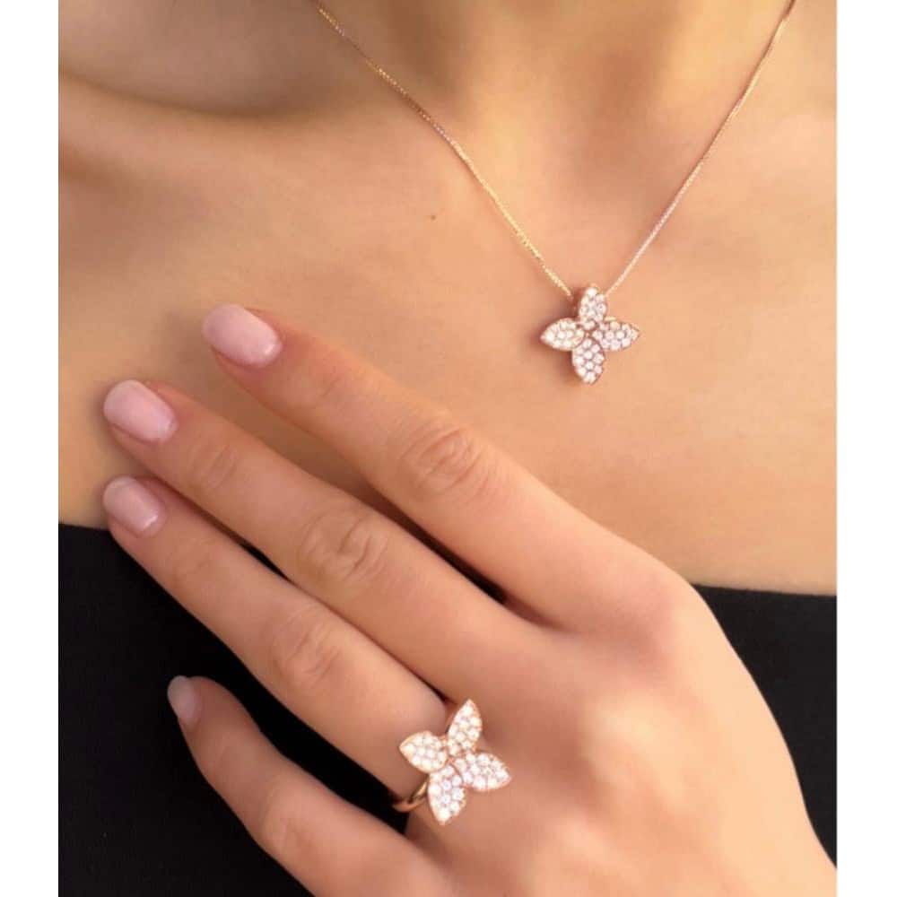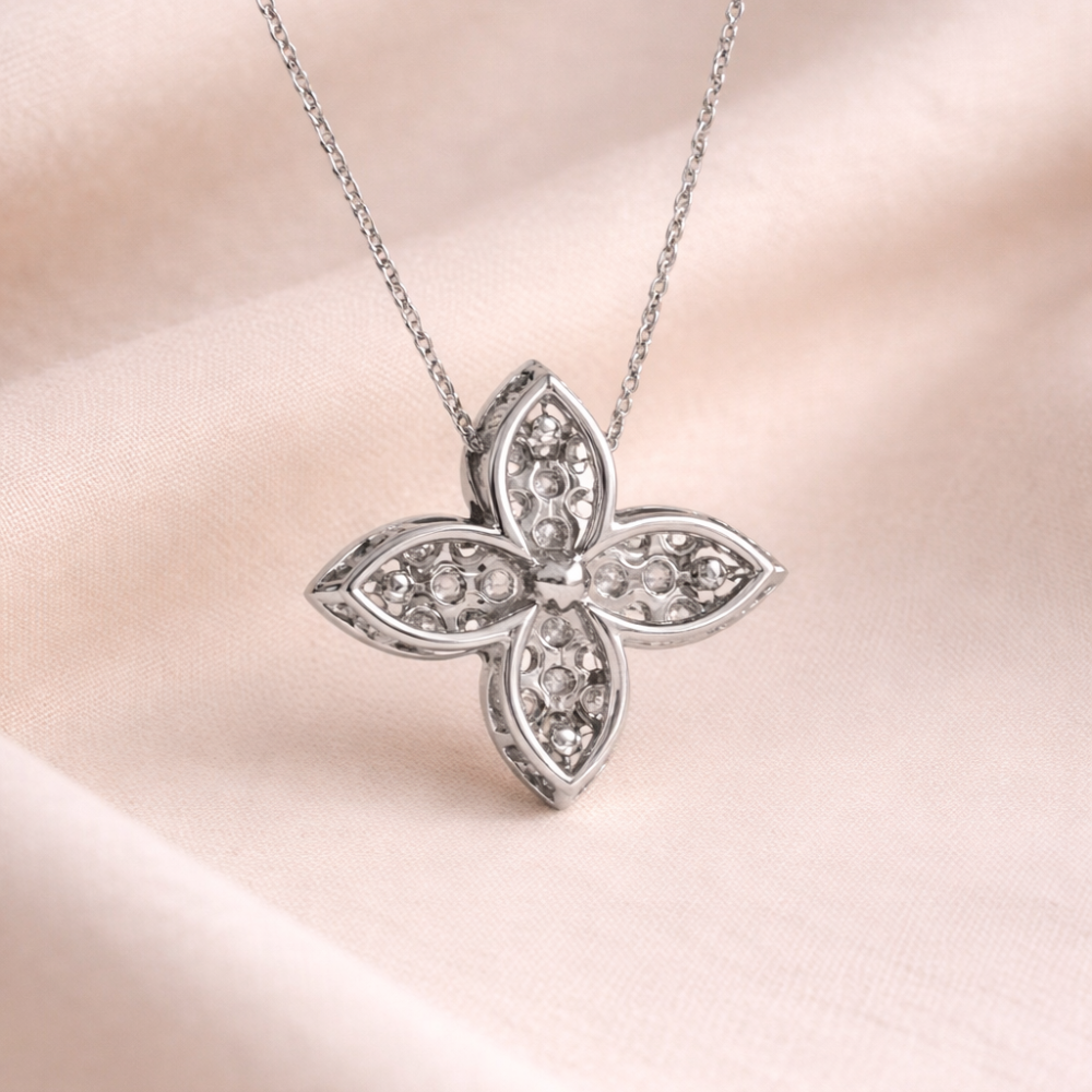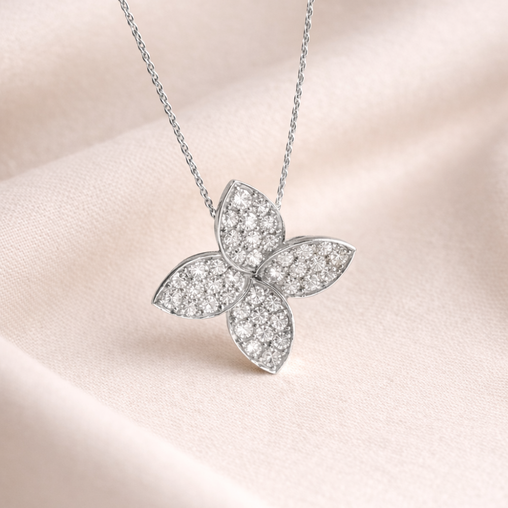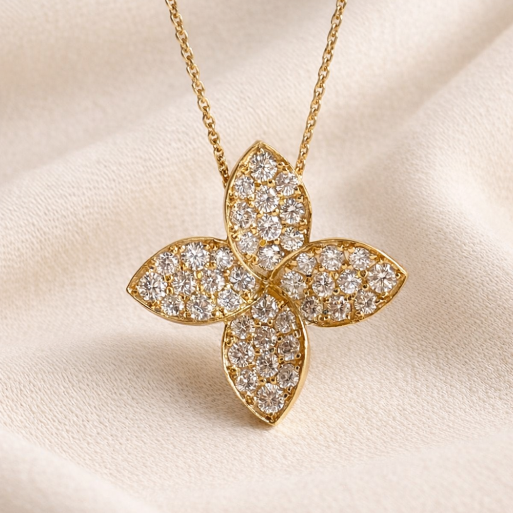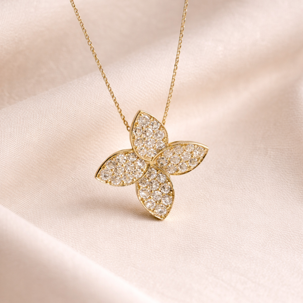 תליון פרח, 18 קראט זהב , בשיבוץ 0.93 קראט יהלומים.