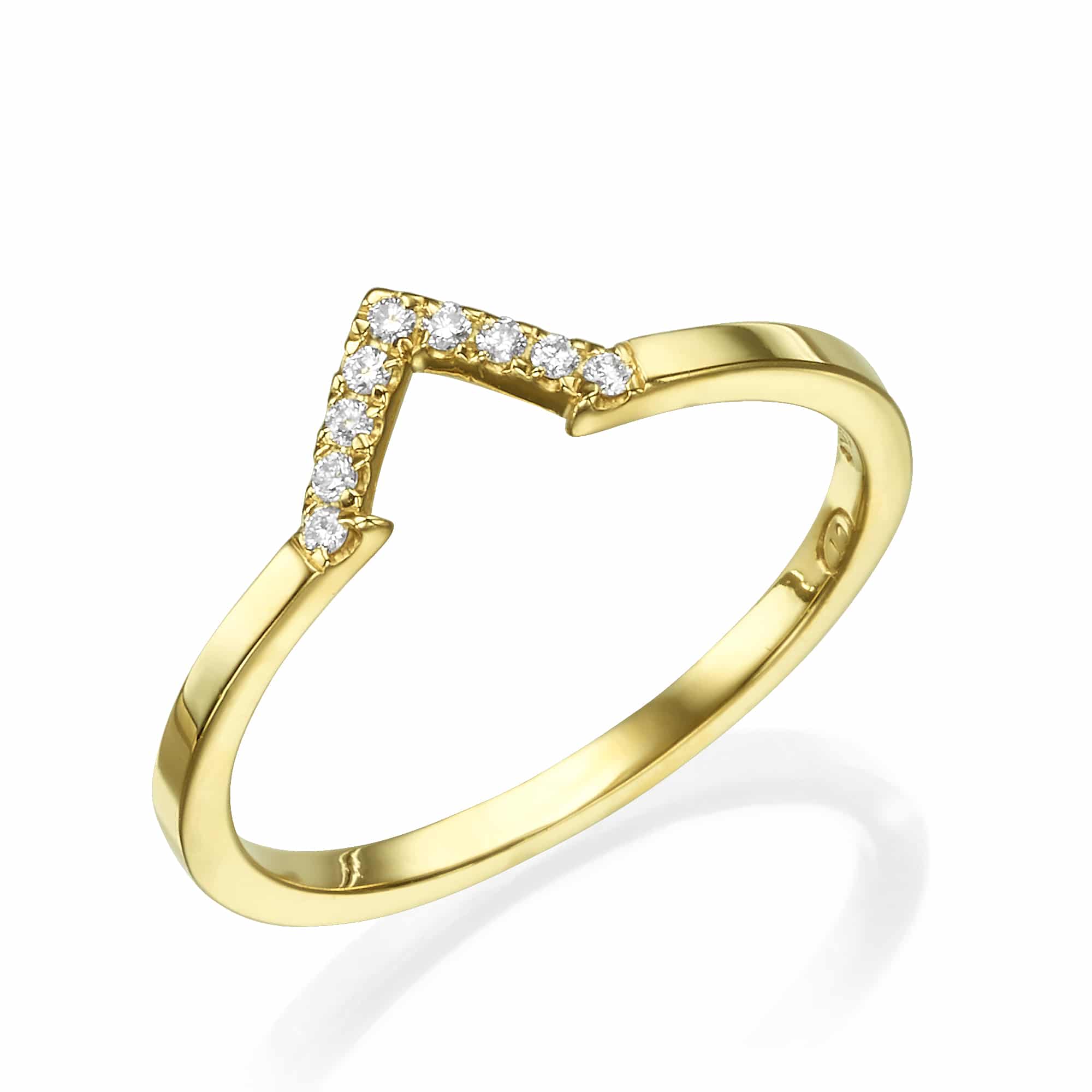 טבעת, 14 קראט זהב , בשיבוץ 9 יהלומים בחיתוך עגול במשקל כולל של 0.06 קראט.