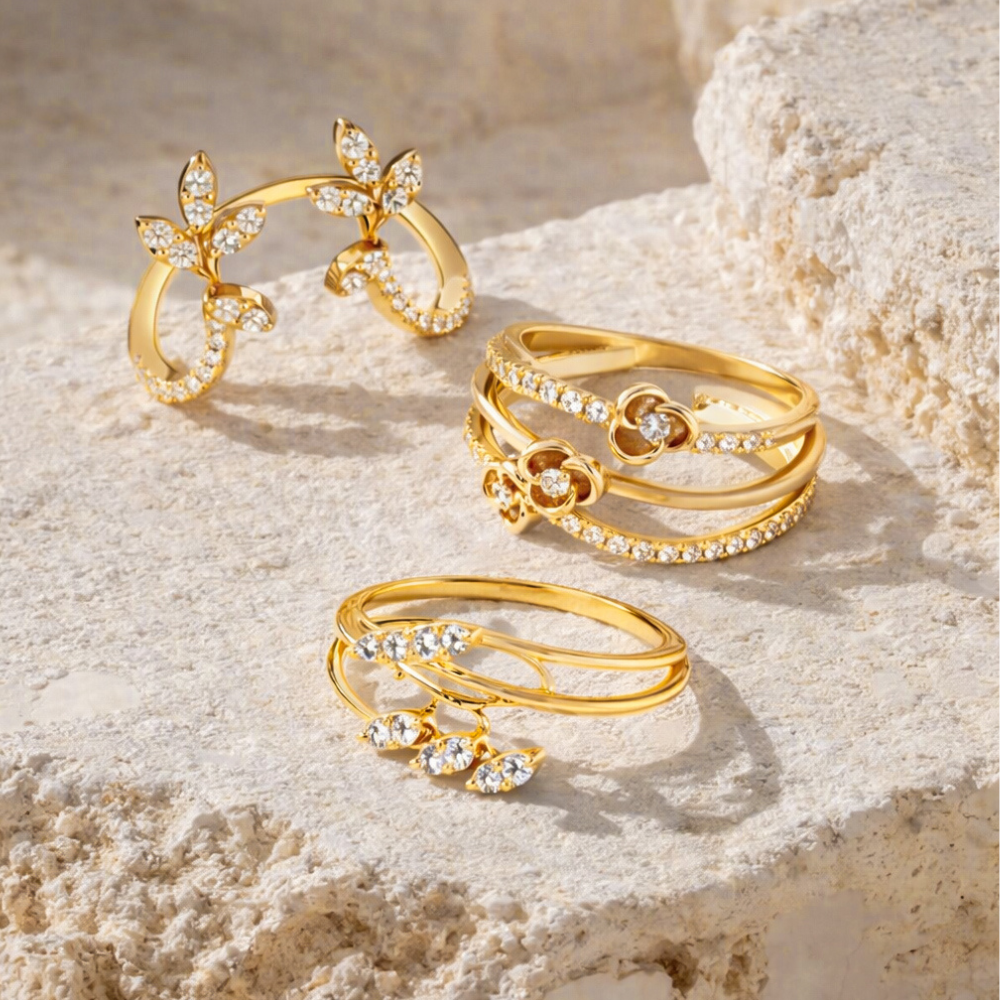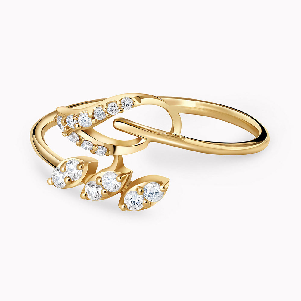 טבעת בעיצוב מיוחד ופרחוני, עשויה 14 קראט זהב ומשובצת ב 0.12 קראט יהלומים.