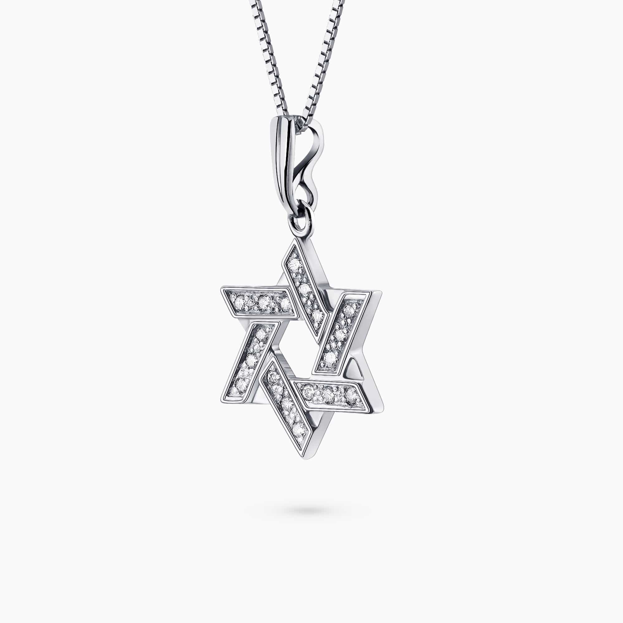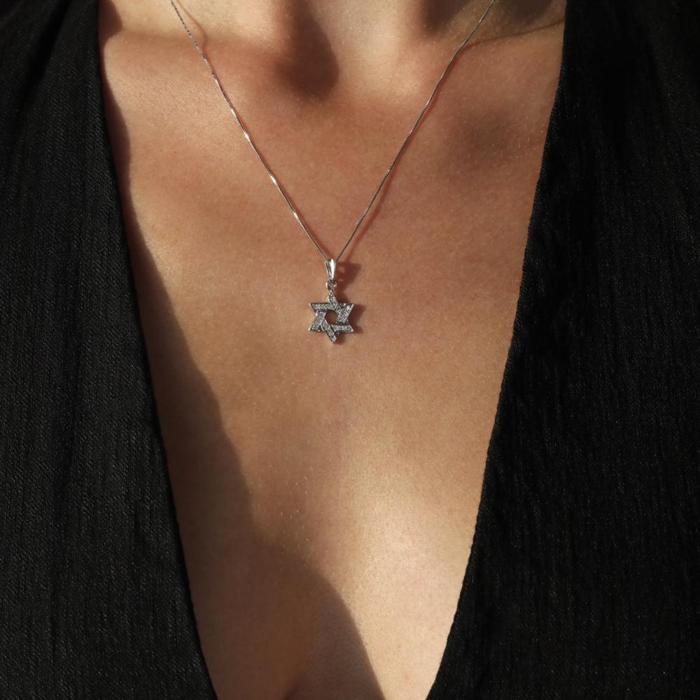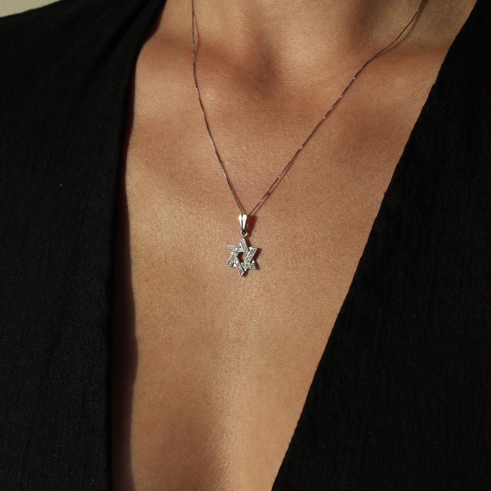 תליון ושרשרת 14 קראט זהב, התליון בעיצוב מיוחד של מגן דוד משובץ ב- 0.12 קראט יהלומים.