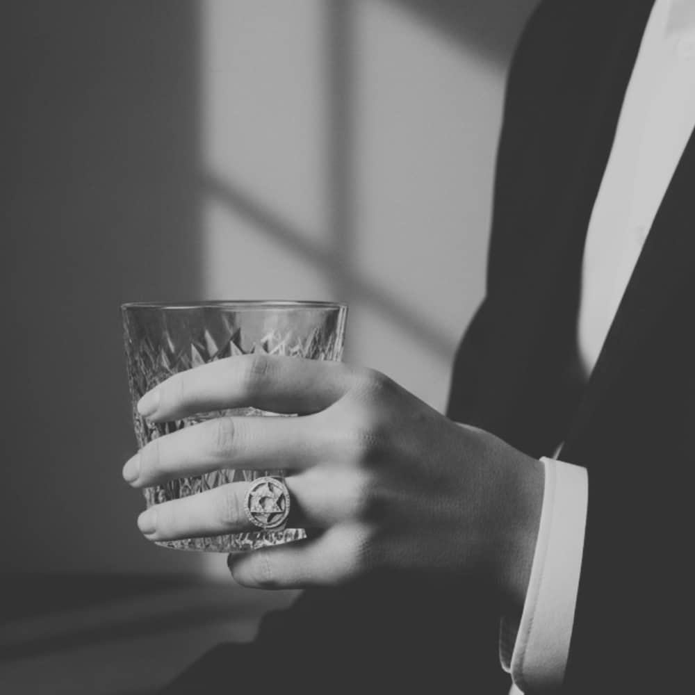 טבעת לגבר, 14 קראט זהב לבן, בשיבוץ אבן אוניקס.