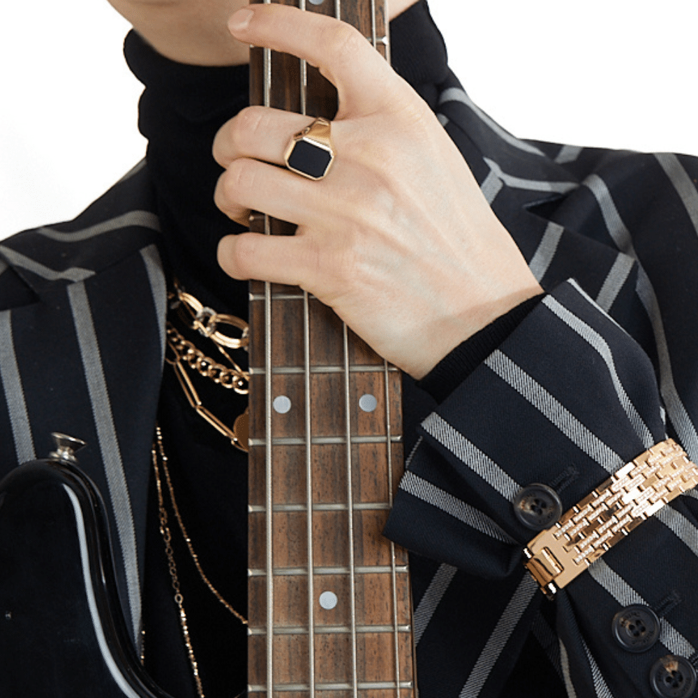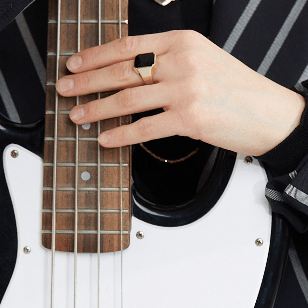 שילוב הזהב עם האבן השחורה יוצר איזון מושלם בין עוצמה לסגנון, ומתאים למי שמעריך עיצוב קלאסי עם טאץ’ מודרני.
