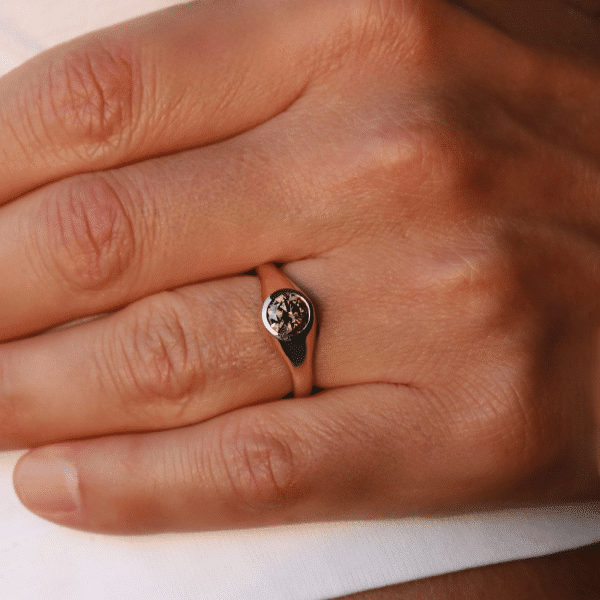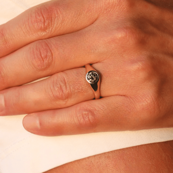 טבעת עוצמתית ומלאת נוכחות, בעיצוב גברי קלאסי עם נגיעה מודרנית.