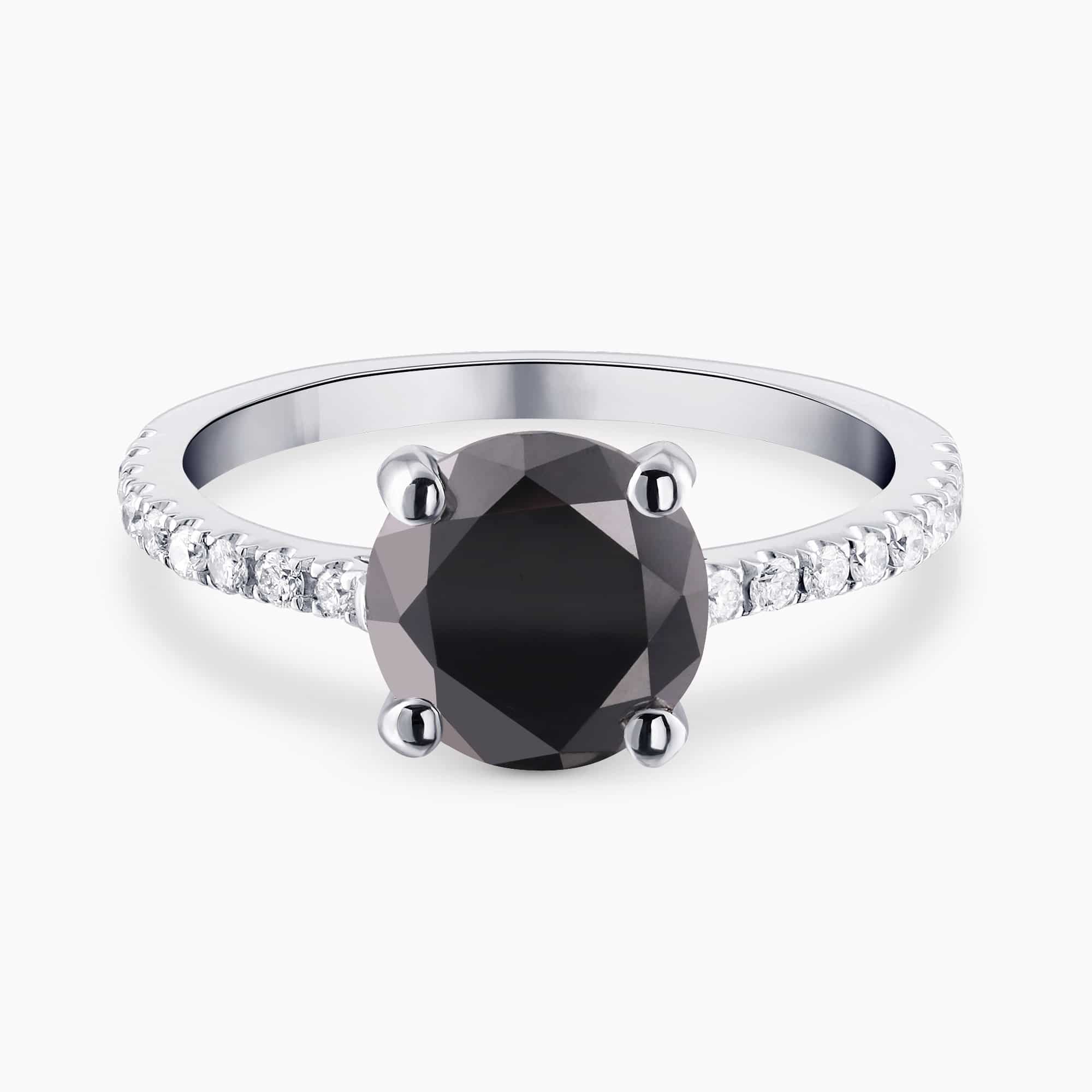 טבעת, 14 קראט זהב לבן, משובצת ב 2.20 קראט יהלום שחור מרכזי ו 0.29 קראט יהלומים.