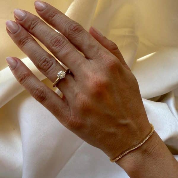טבעת קלאסית עם 6 שיניים, עשויה זהב 14K, משובצת ביהלום מרכזי החל ממשקל 0.50 קראט, בחיתוך עגול.