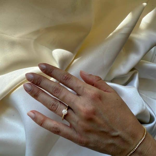 כל טבעת משובצת ביהלומים טבעיים בלבד.