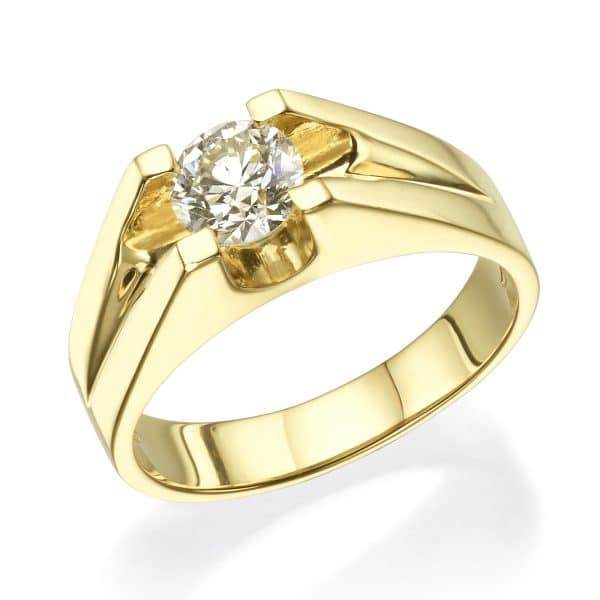 טבעת מעוצבת מזהב 14K, משובצת ביהלום מרכזי החל ממשקל 0.50 קראט, בחיתוך עגול.