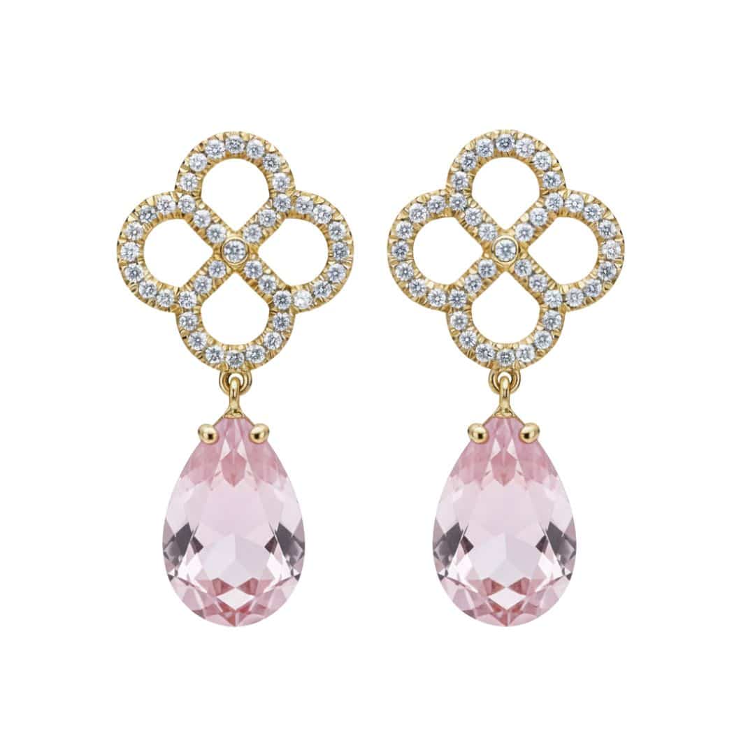 עגילים, 14 קראט זהב, משובצים באבני מורגנייט במשקל 6.00 ובעיטור 0.42 קראט יהלומים