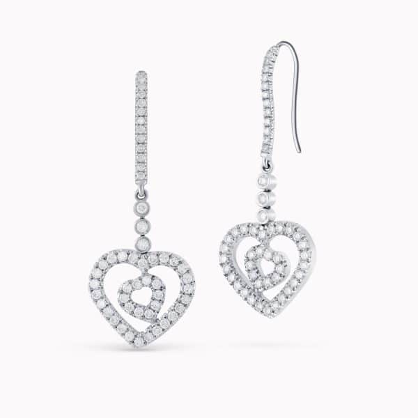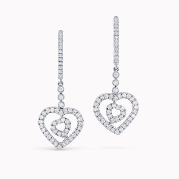 עגילים בעיצוב לבבות, 18 קראט זהב לבן, בשיבוץ 1.67 קראט יהלומים.