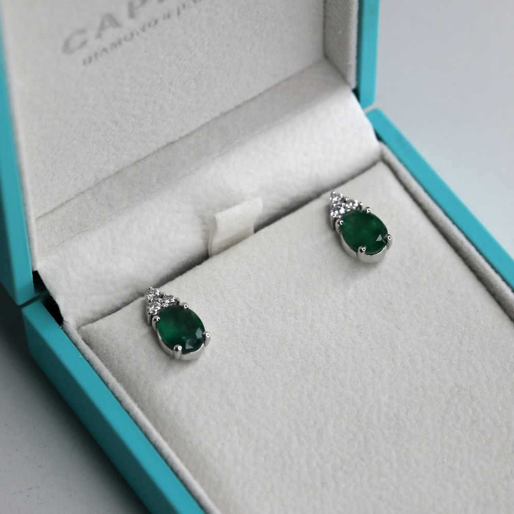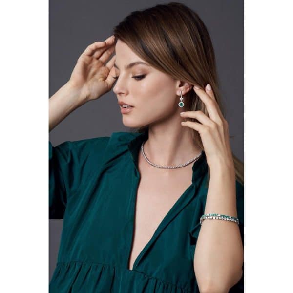 צמיד טניס עשוי 14 קראט זהב לבן, בשיבוץ 6.77 קראט אבני אמרלד ו-1.96 קראט יהלומים.