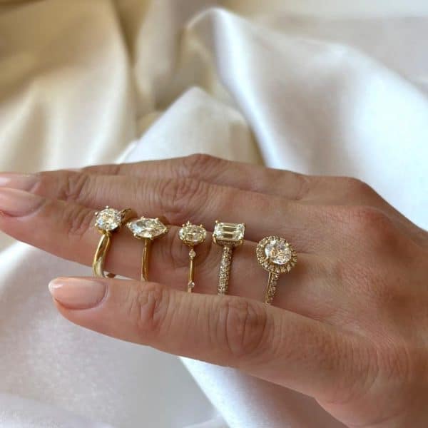 כל טבעת משובצת ביהלומים טבעיים בלבד.